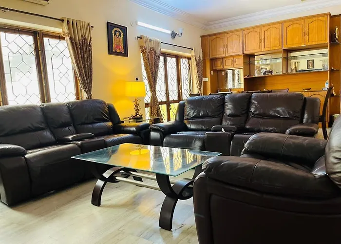 1-ložnicová Best Individual Home Stay Near Apollo Jubilee Hills Hajdarábád nabízí pokoje s výhledy na zahradu a se nachází 3 km od Národní park Kasu Brahmananda Reddy. Ubytování zahrnuje balkón, pohovku a místnost na posezení v pokojích.